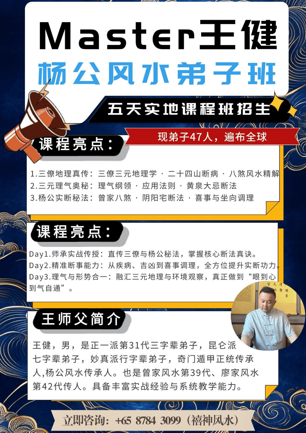 王健师父亲授大师班,专为希望系统掌握杨公风水高阶技法的学员设计。