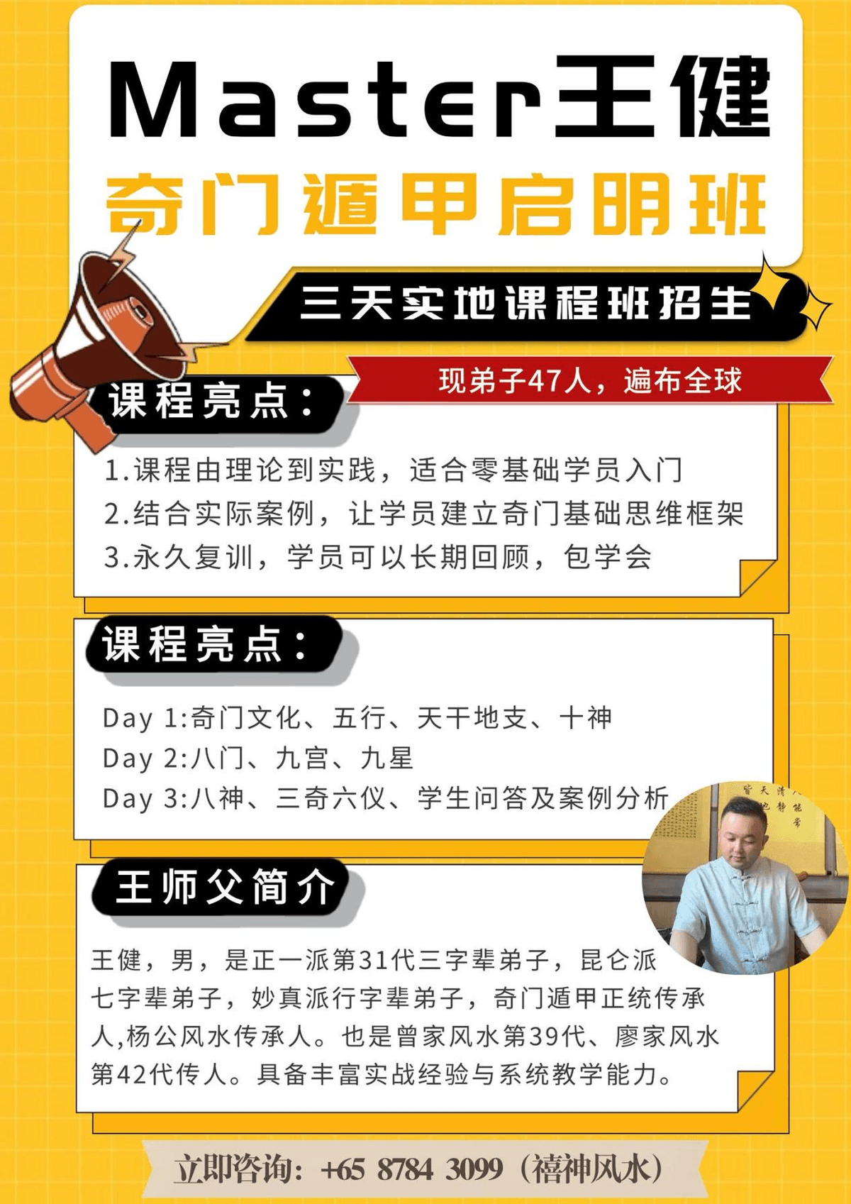 王健师父亲授|奇门遁甲启明班(初级)课程