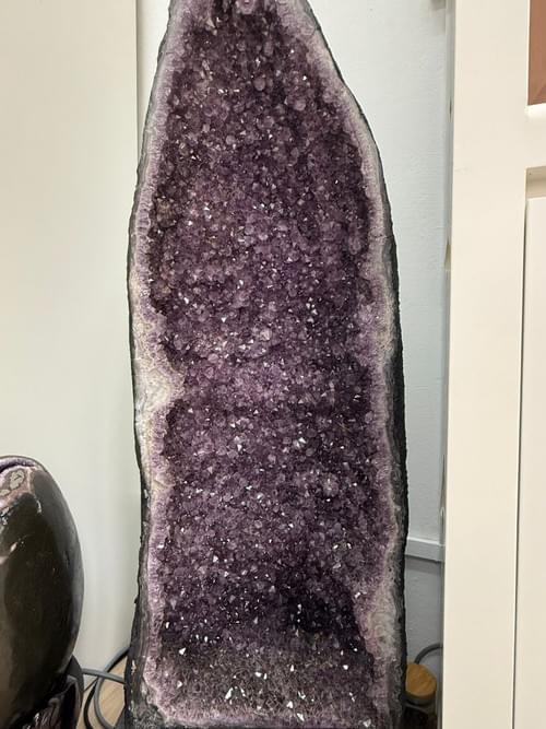 2. 镇静与情绪调节 紫水晶具有舒缓情绪、缓解压力的特性。乌拉圭紫水晶洞能帮助人们在忙碌或紧张的环境中保持冷静,减少焦虑和负面情绪,使心境更加平和。对于冥想、瑜伽或精神修炼者,紫水晶洞可作为稳定心境、引导专注的辅助工具。